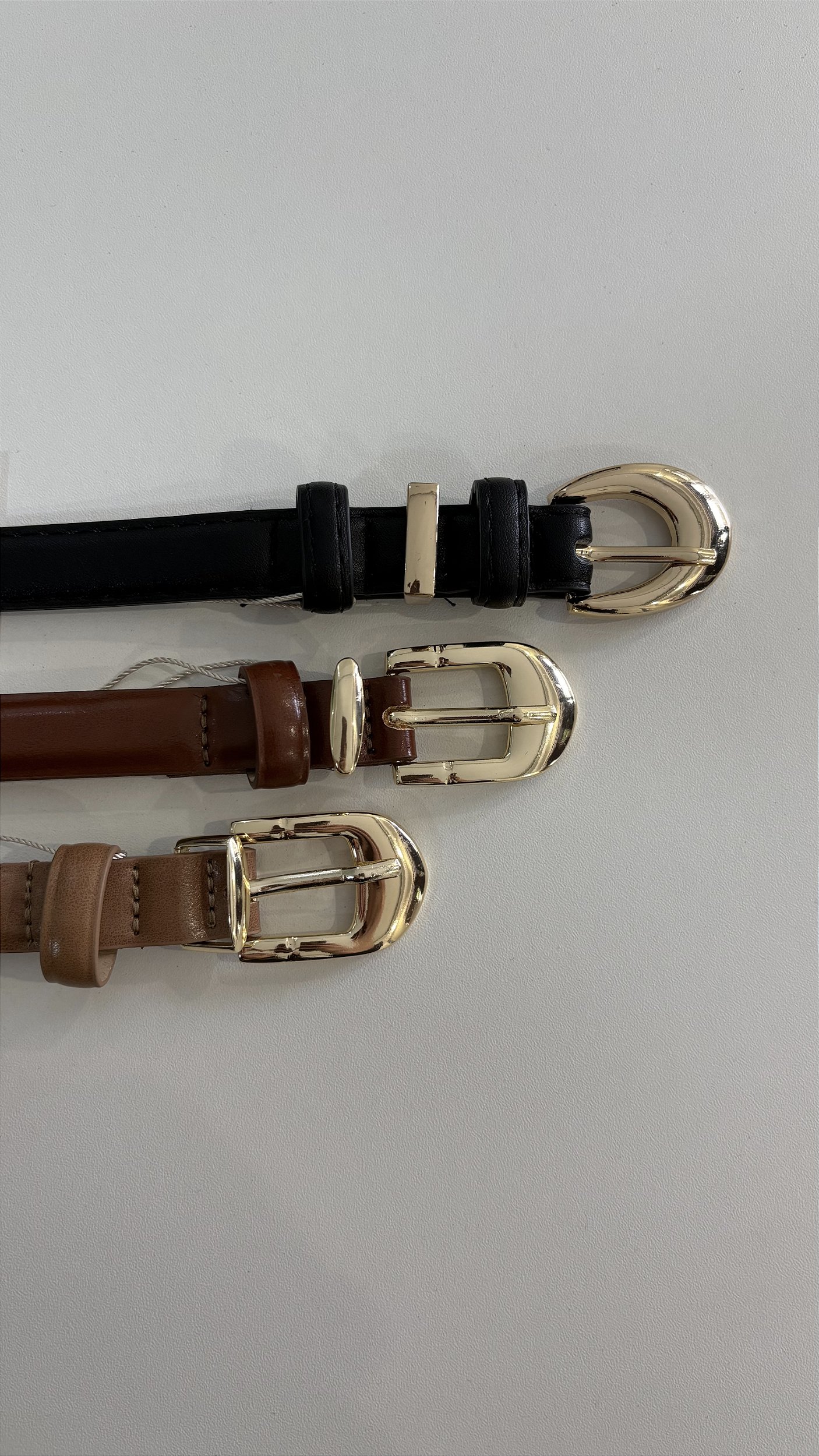 Cinto com couro fake (Poliuretano), fivela dourada (Zamak), 110cm.