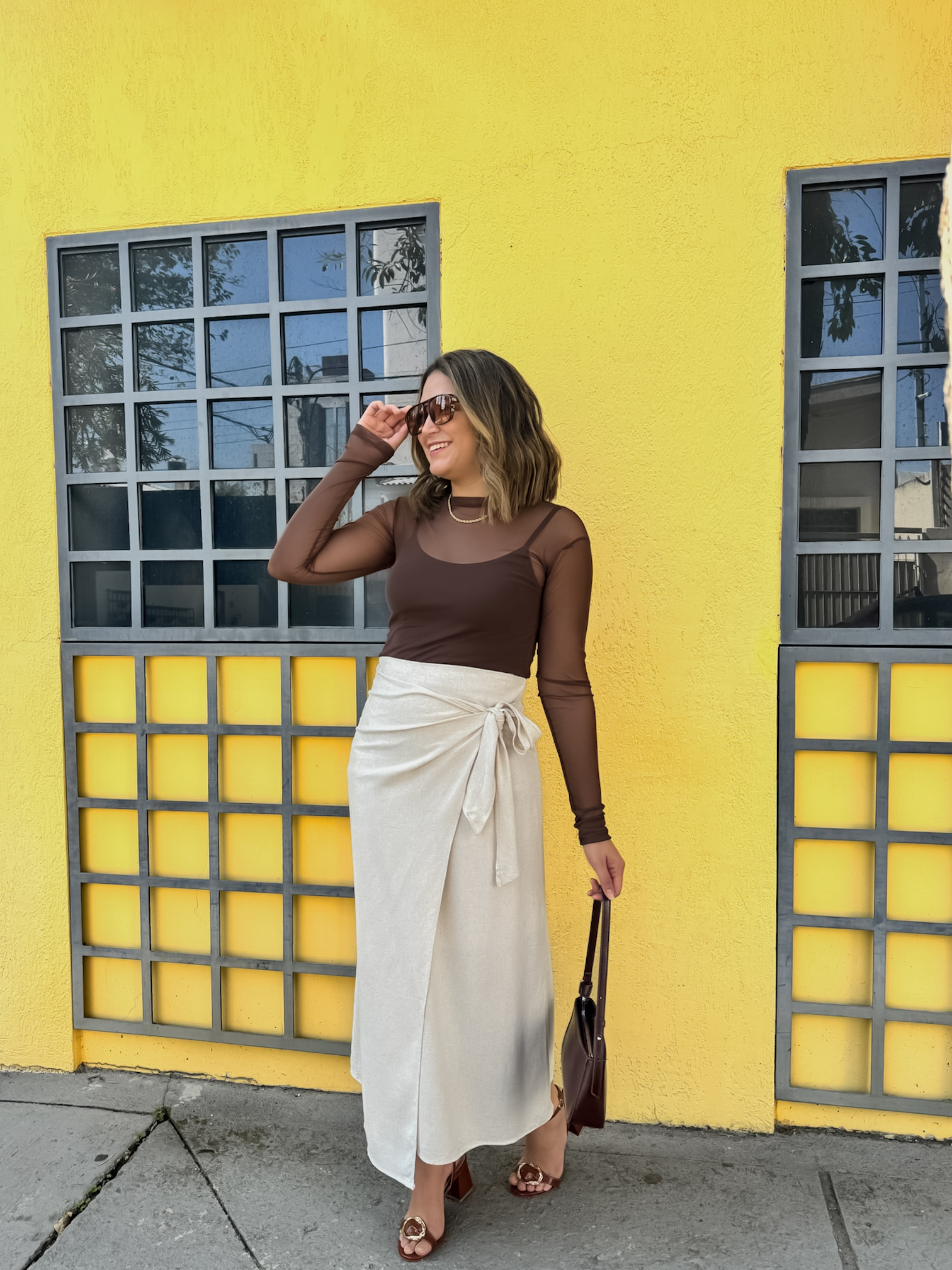 Saia 100% linho, transpassada, com amarração na lateral direita. Fecho por botão invisivel na parte interna.
