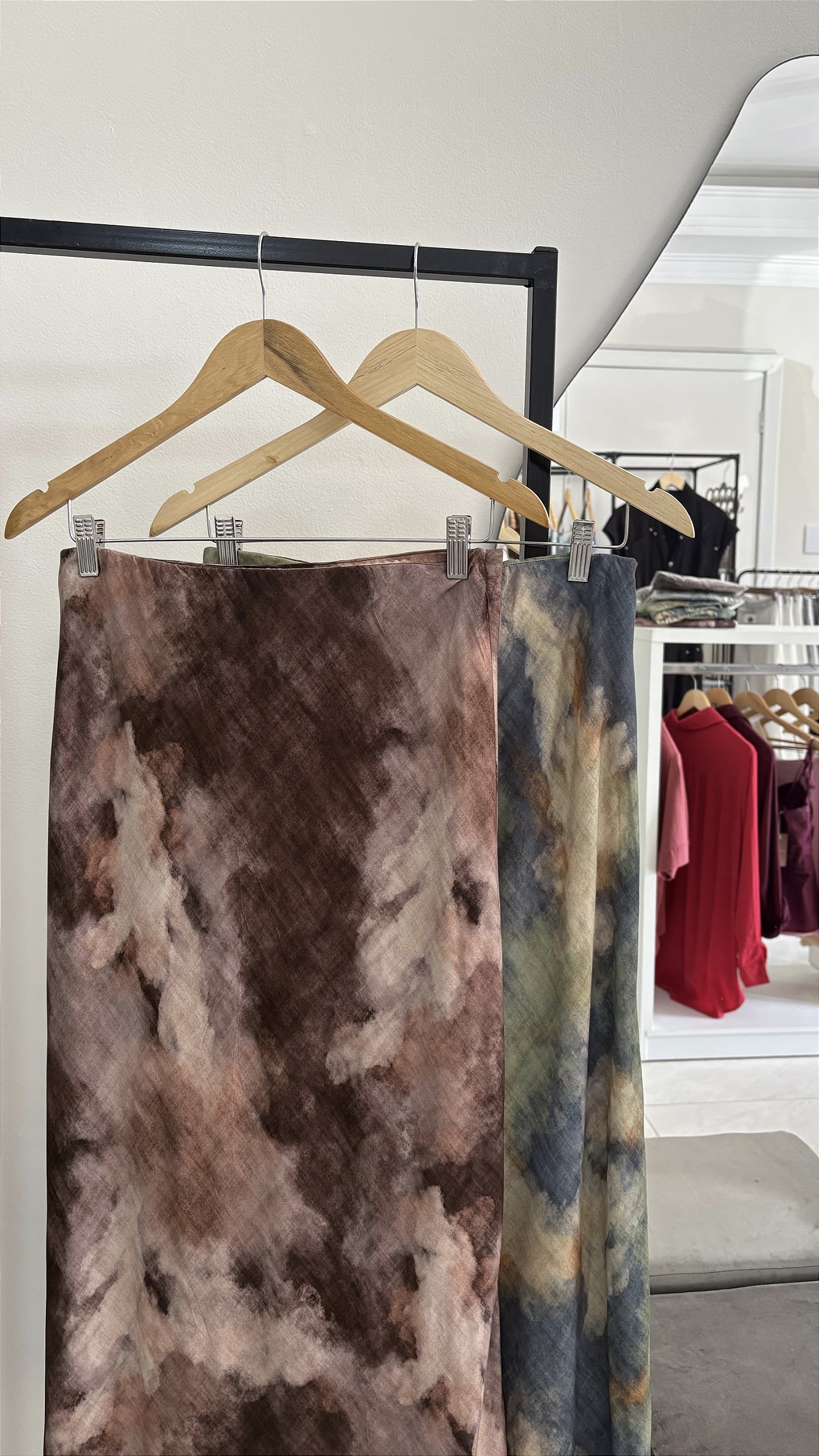 Saia midi, com caimento perfeito, tecido 100% viscose, estampa tiedye.