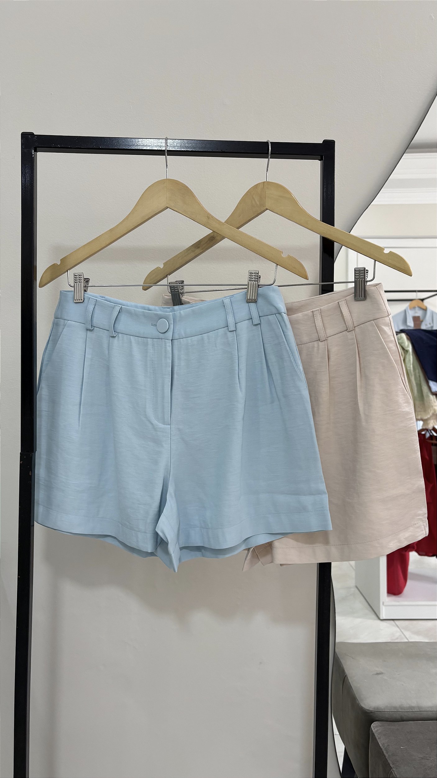 O short que não pode faltar no seu guarda-roupas! Em alfaiataria, mas, com uma pegada mais despojada, com a dobrinha na barra, botão forrado e bolsos frontais.